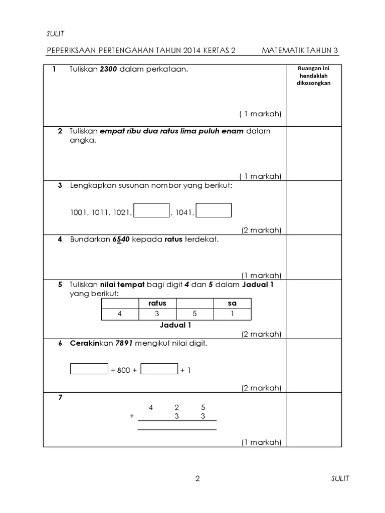 Matematik Tahun 3 Kertas 2 Peperiksaan Pertengahan Tahun Pdf